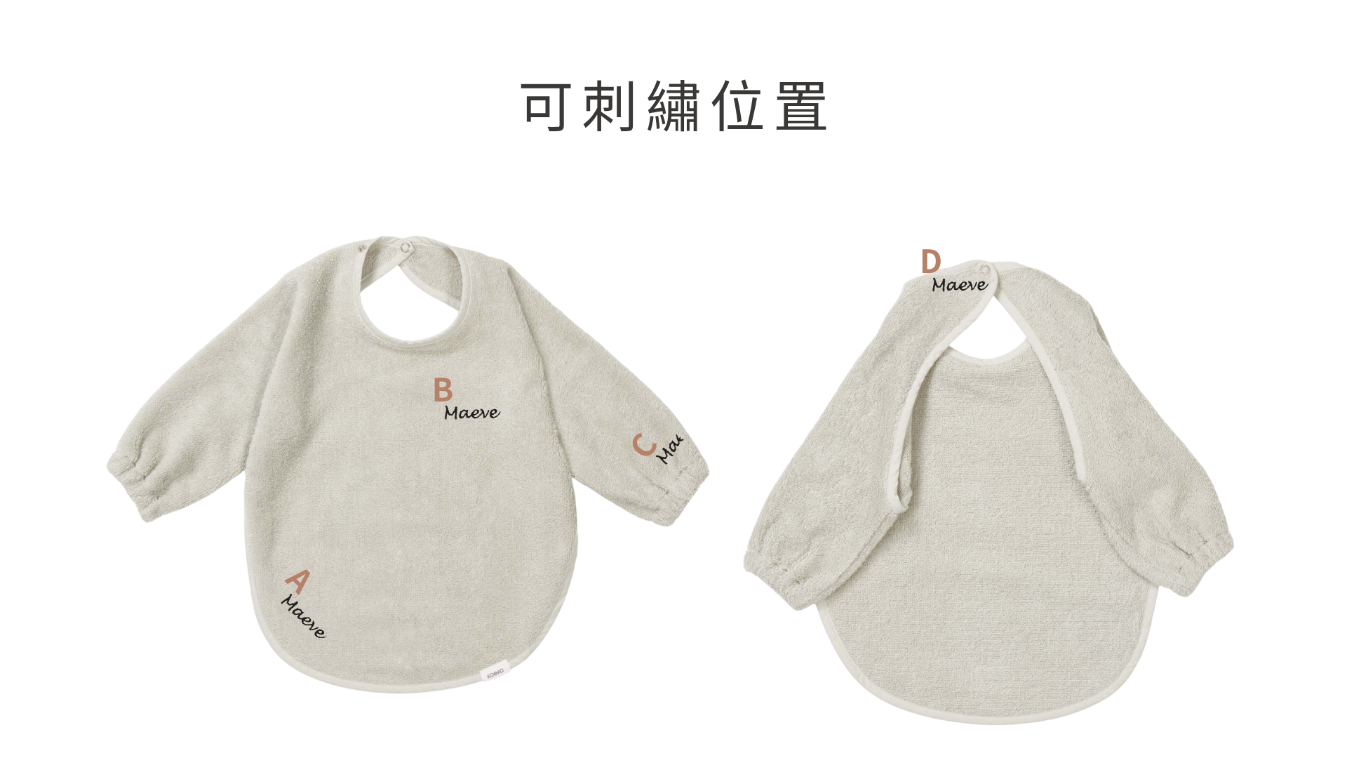 整件式的圍兜專為學習自己吃飯的孩子設計,大尺寸設計能有效隔絕髒亂,有機棉材質好穿好洗