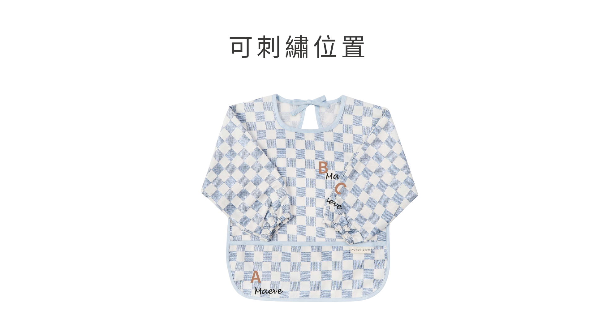 面對用餐日常Avery Row使用了有機棉布加上防水塗層製作圍兜,保留了棉布特有紋路及精緻花紋,大大降低非有機材料使用,長袖設計讓孩子更放心探索食物的美好,也保持身體乾乾淨淨。