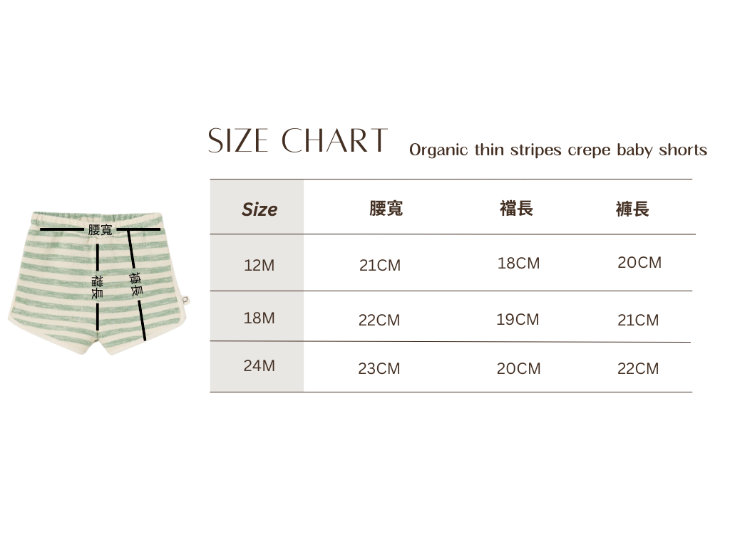 Cozmo -Organic thin stripes crepe baby shorts 條紋短褲 |Grass Green