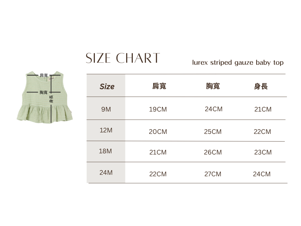 Cozmo -lurex striped gauze baby top 荷葉擺短上衣 |tender green