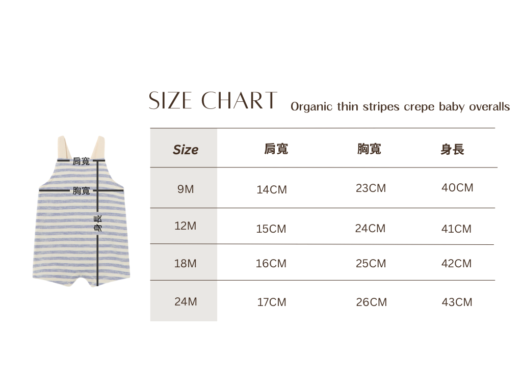 連身褲選用雲朵般柔軟有機棉布料,背後彈性鬆緊設計及褲襠開扣,穿著更容易舒適,條紋及吊帶點綴充分展現可可愛愛