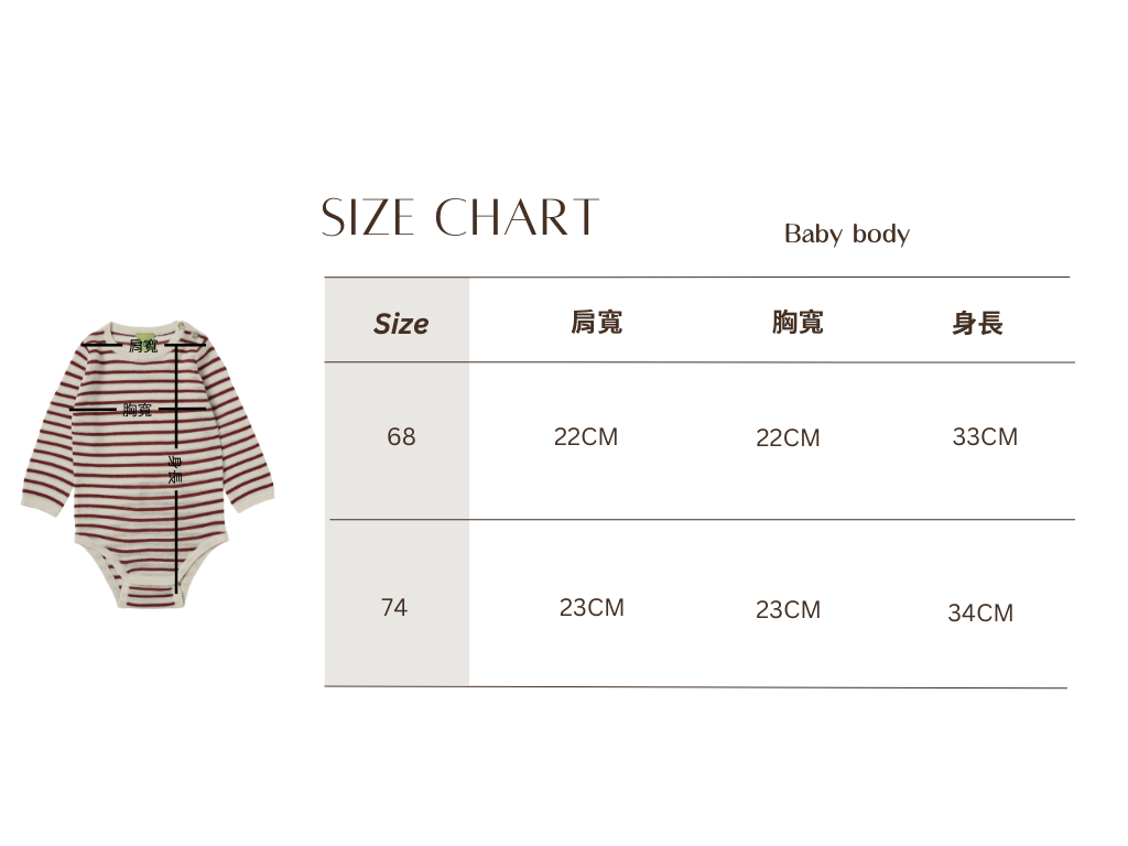 FUB -Baby body 條紋長袖包屁衣| ecru/clay